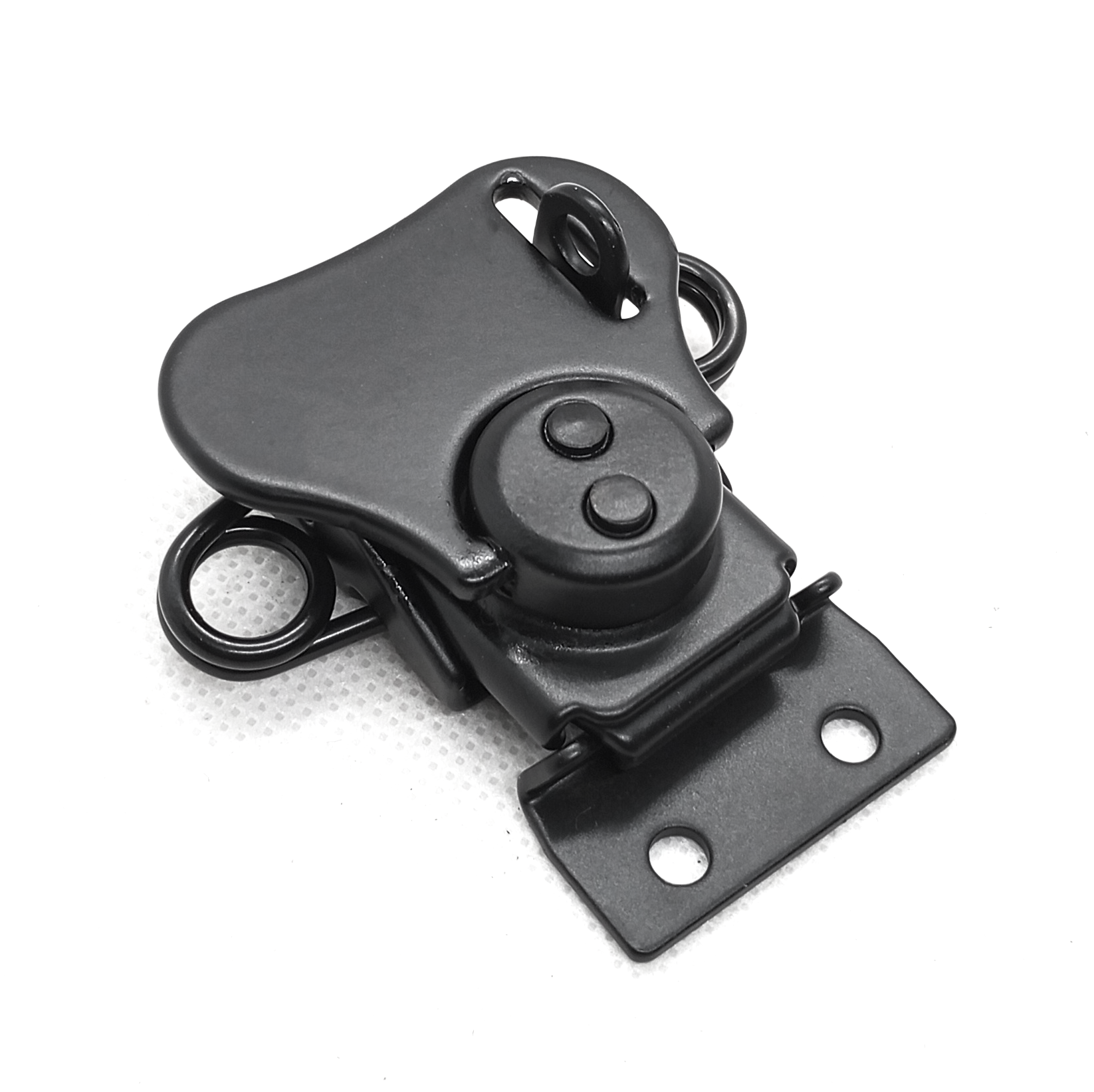 Esse fecho é da linha de ferragens externas, o que facilita para fazer a instalação, é só posicionar no local desejado e rebitar, colocando uma parte na tampa e a outra no corpo do case.